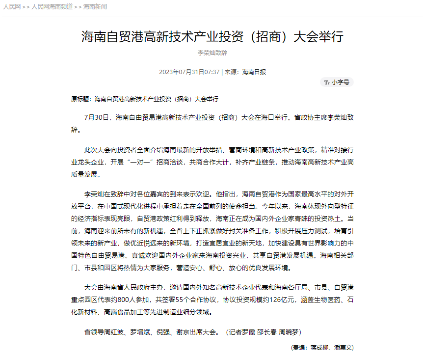 中霆世紀參加海南自貿港高新技術產業投資(招商)大會